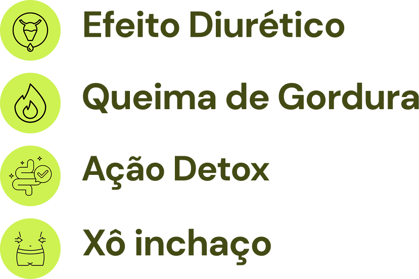 É uma bebida emagrecedora com efeito DIURÉTICO que estimula a limpeza e desintoxicação do organismo e fortalece o sistema imunológico.